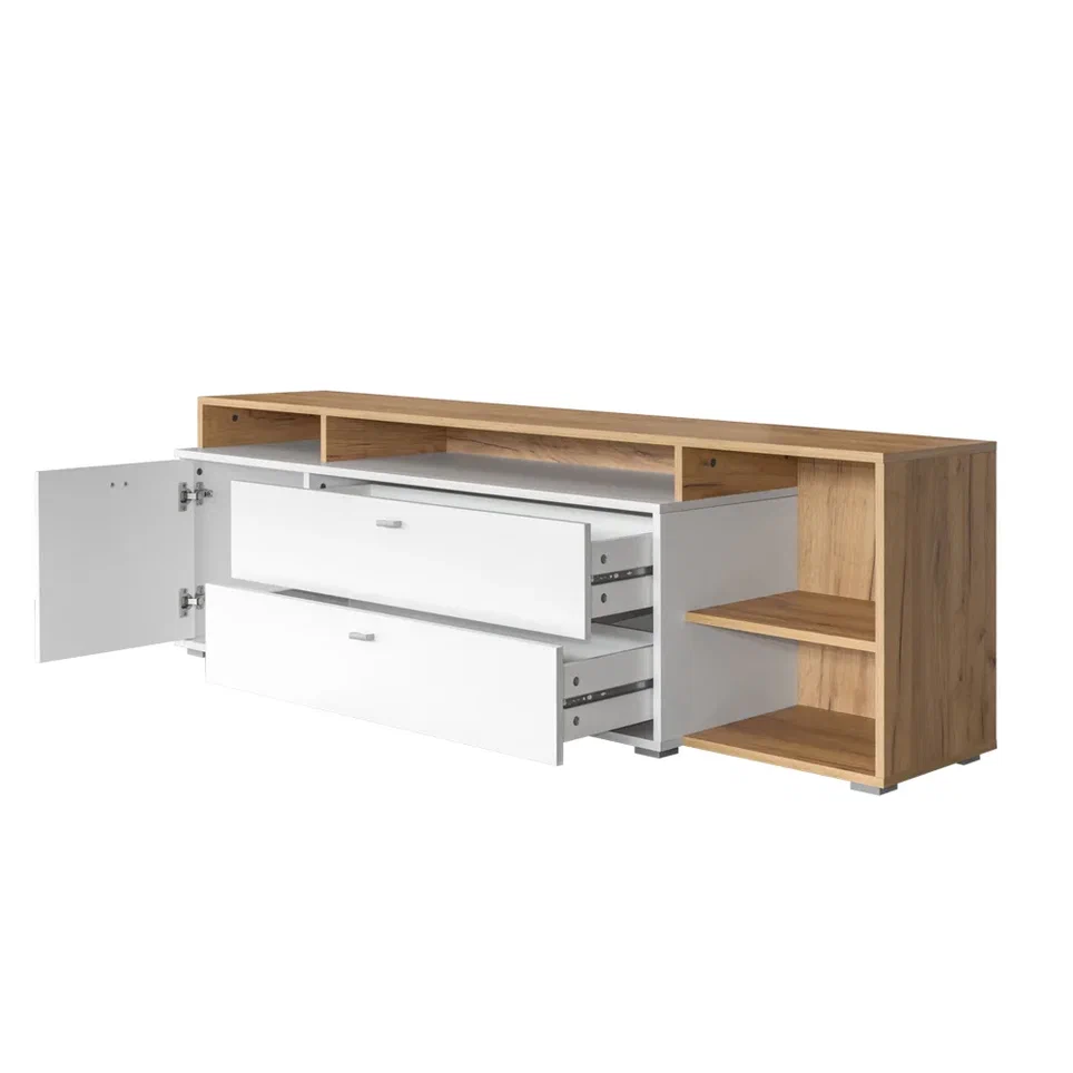Тумба Бэль 10.92 будет отличным дополнением интерьера любой комнаты. Изделие можно использовать в качестве подставки под телевизор для более комфортного просмотра новостей, сериалов и различных телепередач. Открытые ниши предназначены для необходимой аппаратуры, а два выдвижных ящика и отделение за глухой дверцей созданы для хранения большого количества различных вещей и предметов.