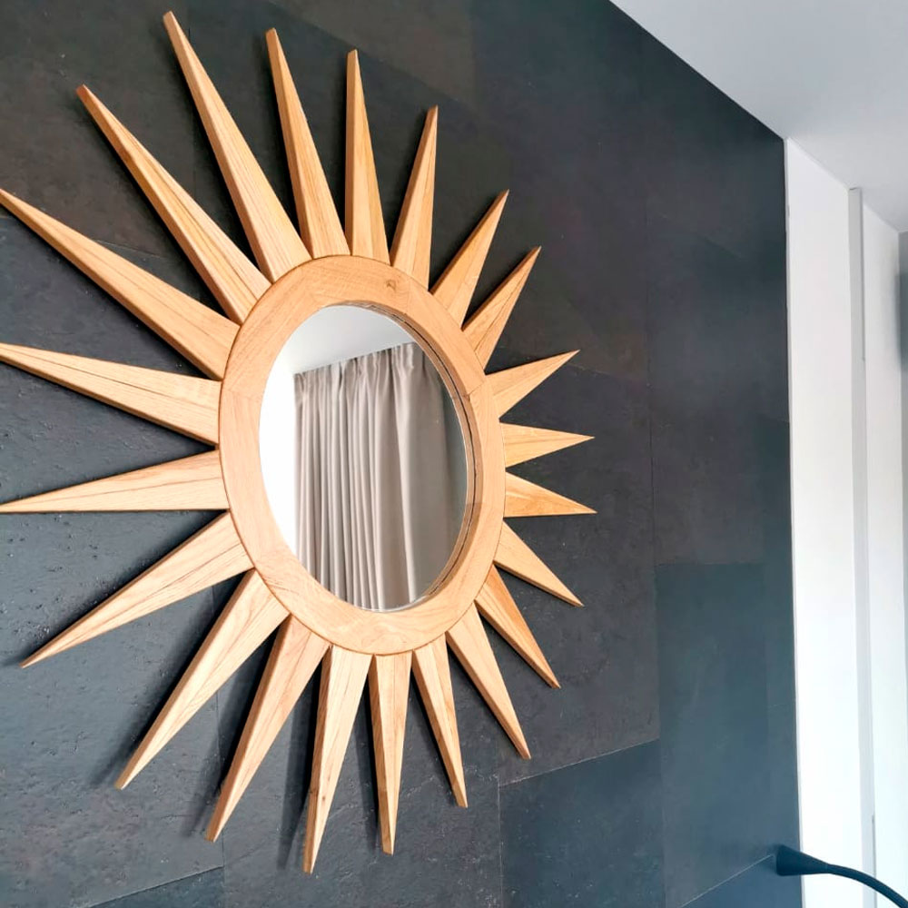 Декоративное зеркало "Солнце" из массива дуба.