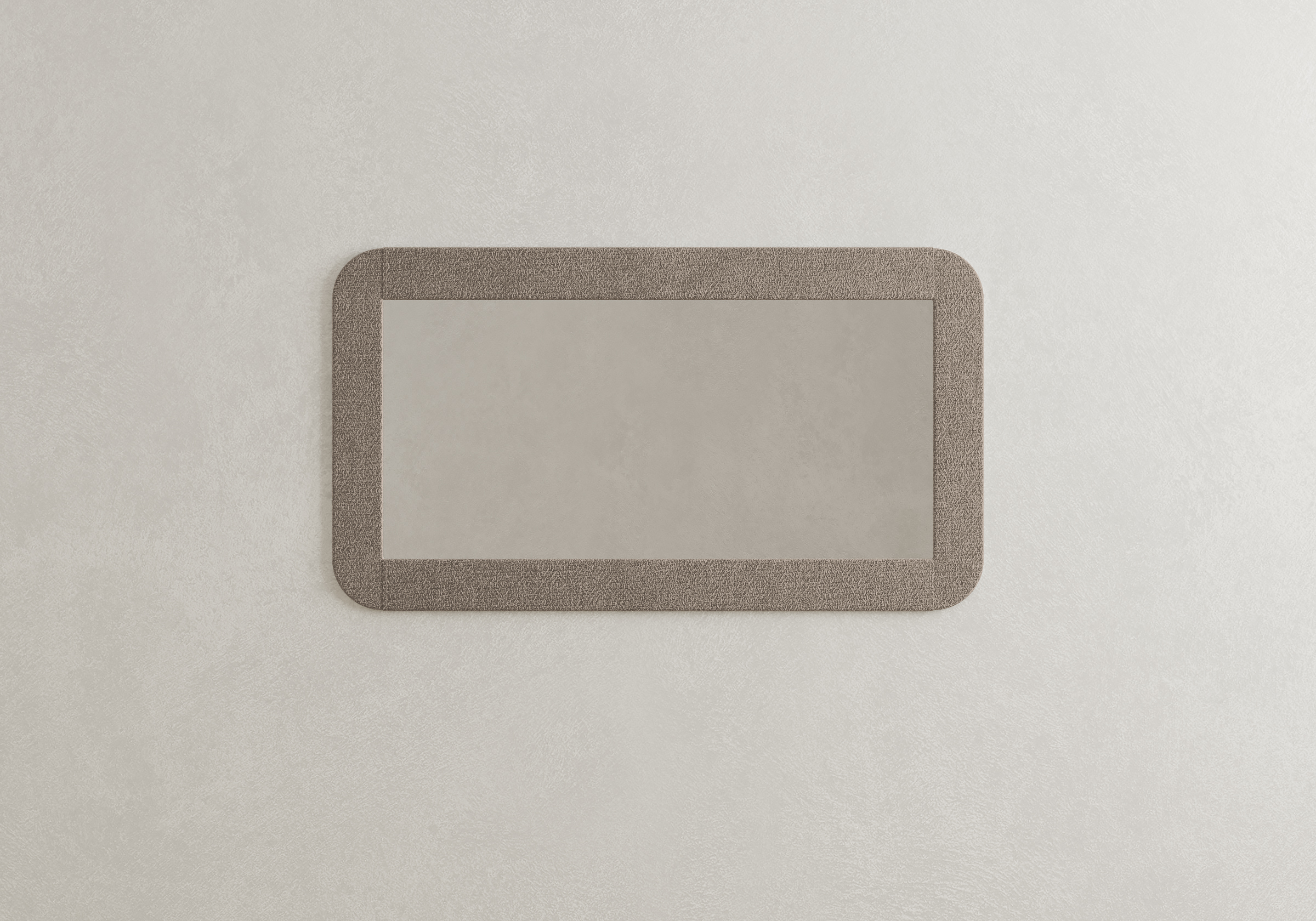 Изящное прямоугольное зеркало в мягкой обивке. Возможно выполнение в различных вариантах цветового исполнения.
